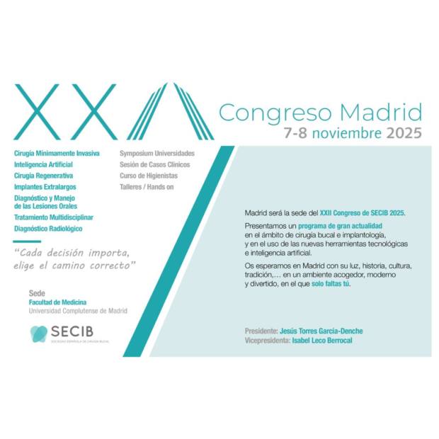 El próximo 14 de noviembre de 2025, el Ilustre Colegio Oficial de Dentistas de Huelva acogerá el curso teórico-práctico “Cirugía de implantes para obtener un buen resultado protésico: implantes inmediatos postextracción y cirugía guiada”, donde los doctores Francisco Javier Manzano Moreno y Francisco Javier Herrera Briones mostrarán las técnicas más actuales para lograr…