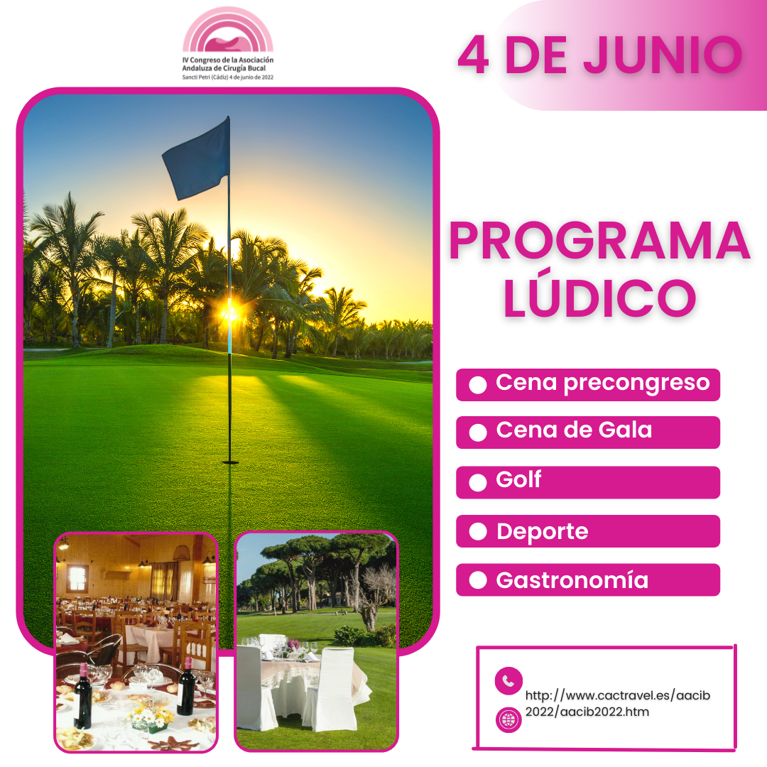 Desde la junta directiva de la AACIB, se informa de que el IV Congreso se acompaña de un completo programa de actividades lúdicas que servirán como el “perfecto complemento” de la parte científica. De este modo, el programa complementario de actividades incluye la cena en el restaurante ‘Cachito’, el viernes 3 de junio; la cena en el restaurante ‘Vida padre’ el sábado 4 de junio; y varias actividades en el Real Novo Sancti Petri Club de Golfo, que incluyen el ‘Clinic Bautismo de Golf’ y un torno de la citada disciplina deportiva para avanzados, en horario de 10.00 a 12.00 horas del domingo 5 de junio.