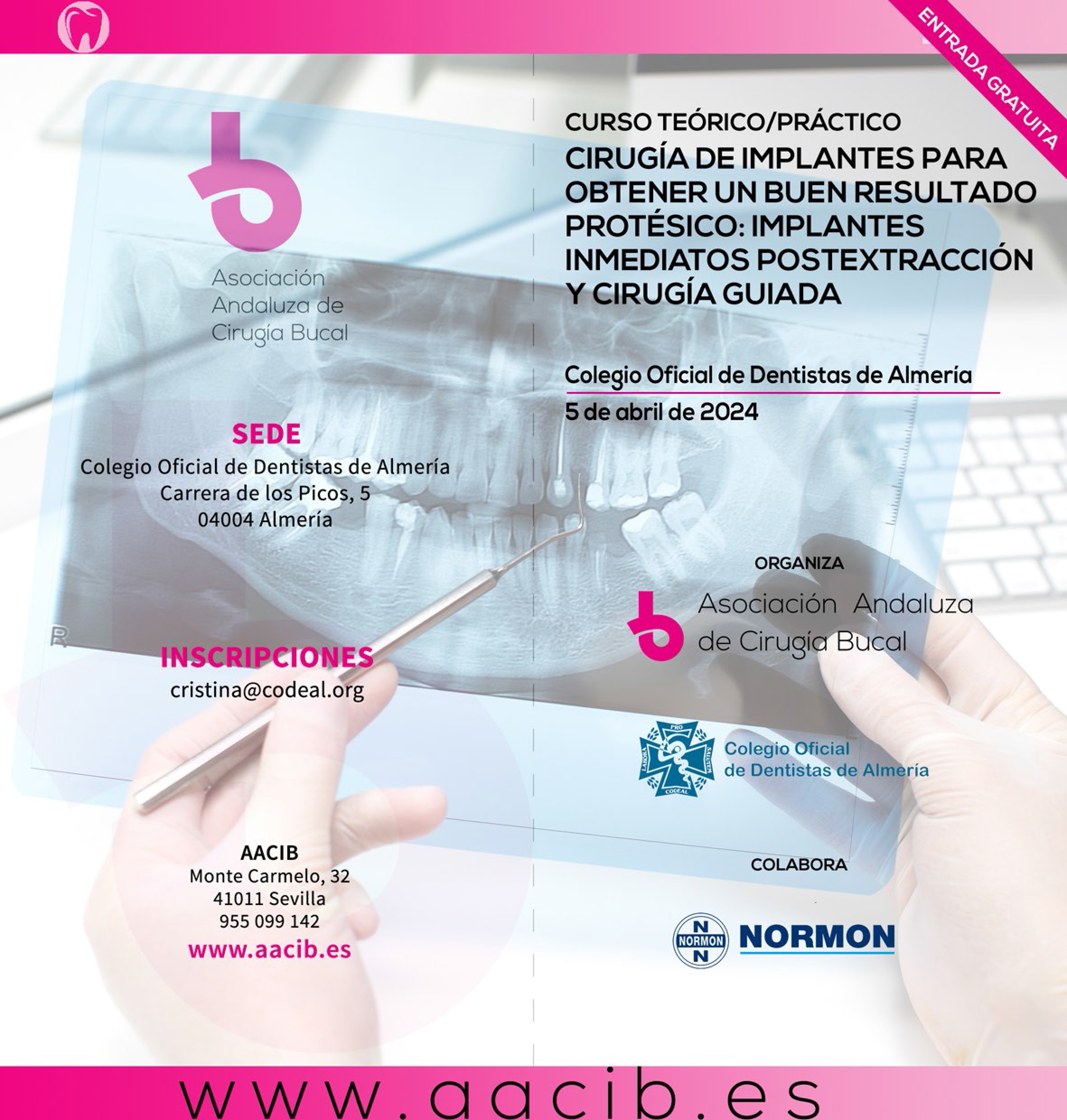 Próximo viernes 5 de Abril de 2024 de 16.00 a 20.30 horas en el Colegio Oficial de Dentistas de Almería, situ en Carrera de los Picos, 5.