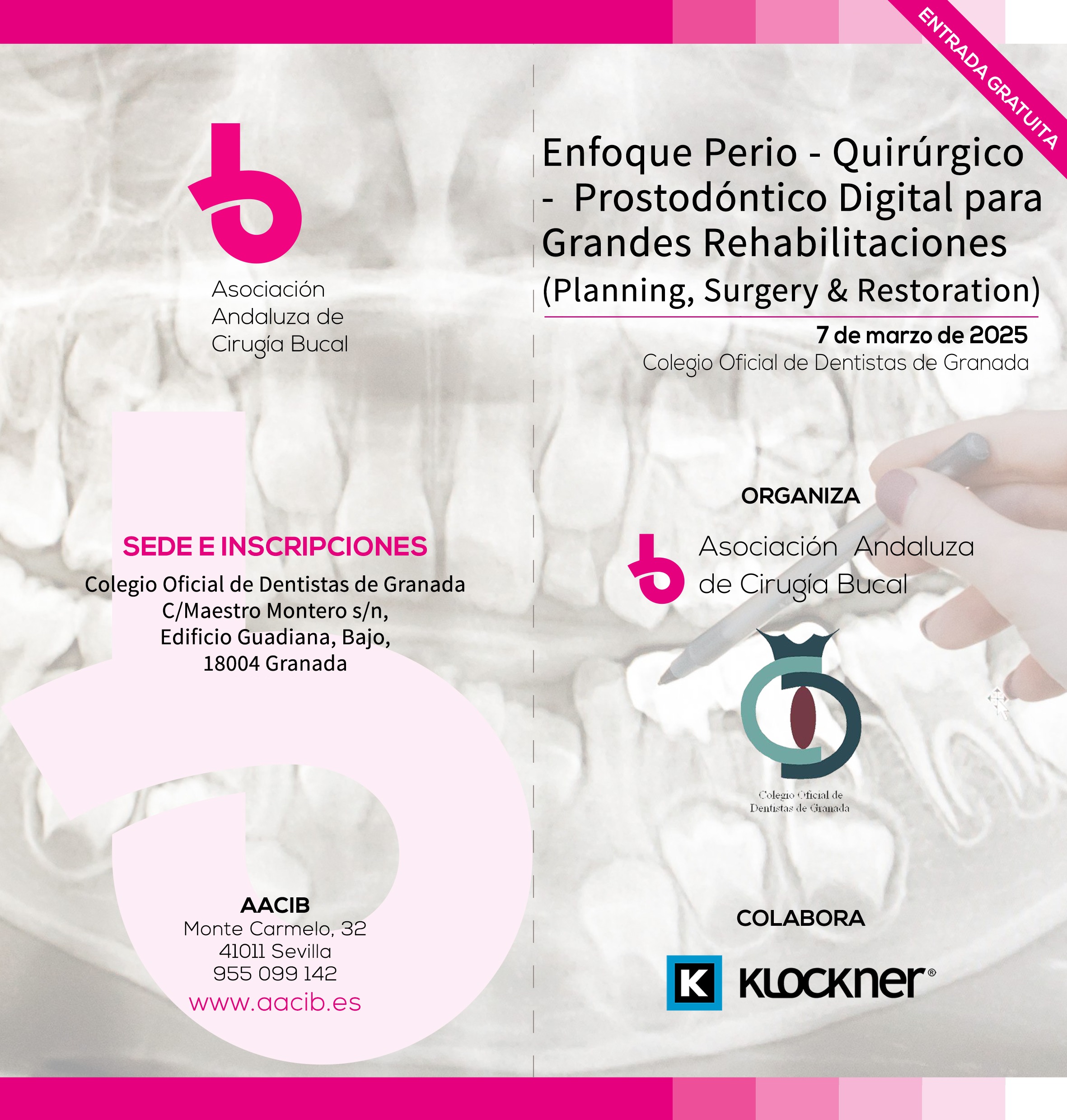 El próximo 7 de marzo tendrá lugar en el Colegio Oficial de Dentistas de Granada el curso «Enfoque Perio-Quirúrgico – Prostodóntico Digital para Grandes Rehabilitaciones (Planning, Surgery & Restoration)».