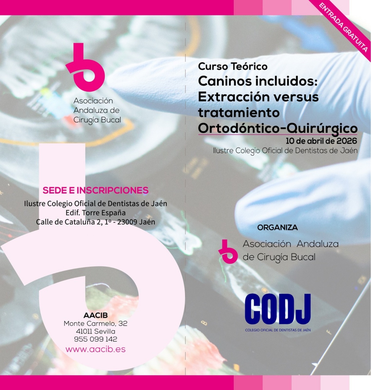 El próximo 10 de abril de 2026 se celebrará un curso teórico dirigido a profesionales del sector odontológico interesados en profundizar en el abordaje clínico de los caninos incluidos, comparando la extracción frente a los tratamientos ortodóntico-quirúrgicos.